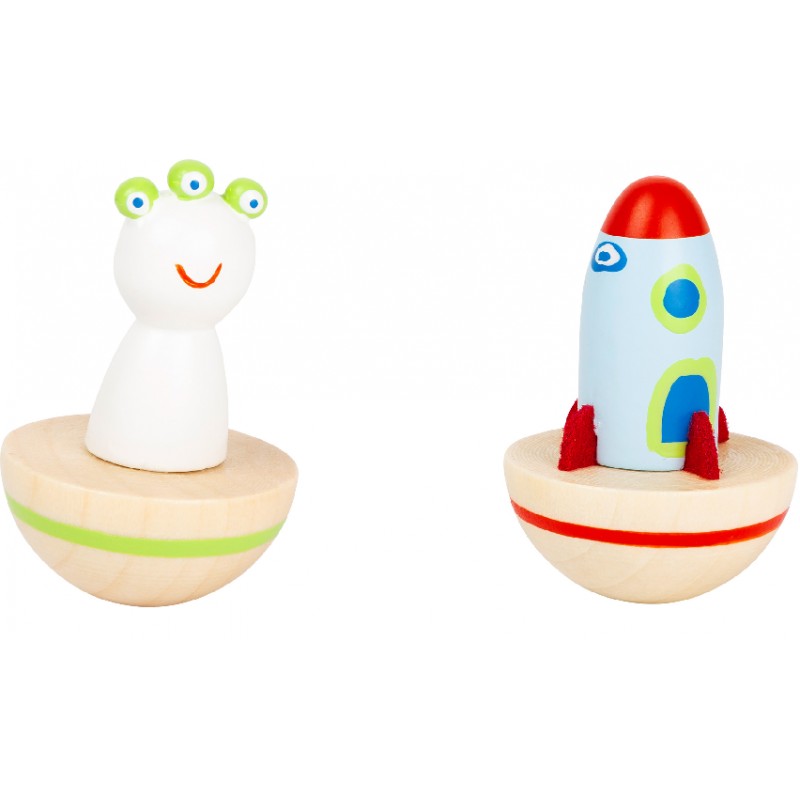 La fusée et l'extraterrestre tournent sur leur plateau au rythme d'une douce mélodie.