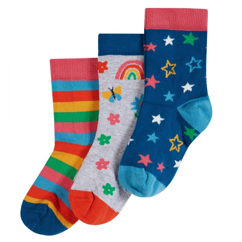 Lot de 3 adorables paires de chaussettes en coton biologique de la marque anglaise Frugi.