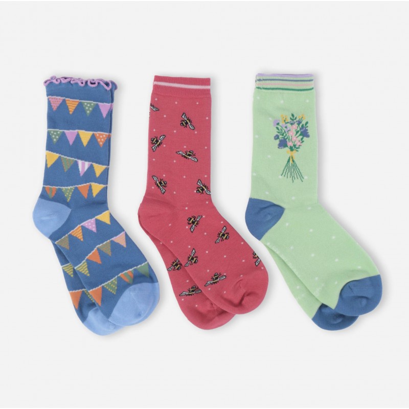 Cette belle boite cartonnée contient 3 paires de chaussettes colorées :
