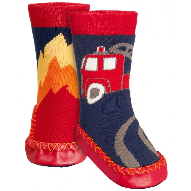 Votre petit pompier va adorer ces jolis chaussons-chaussettes colorés.