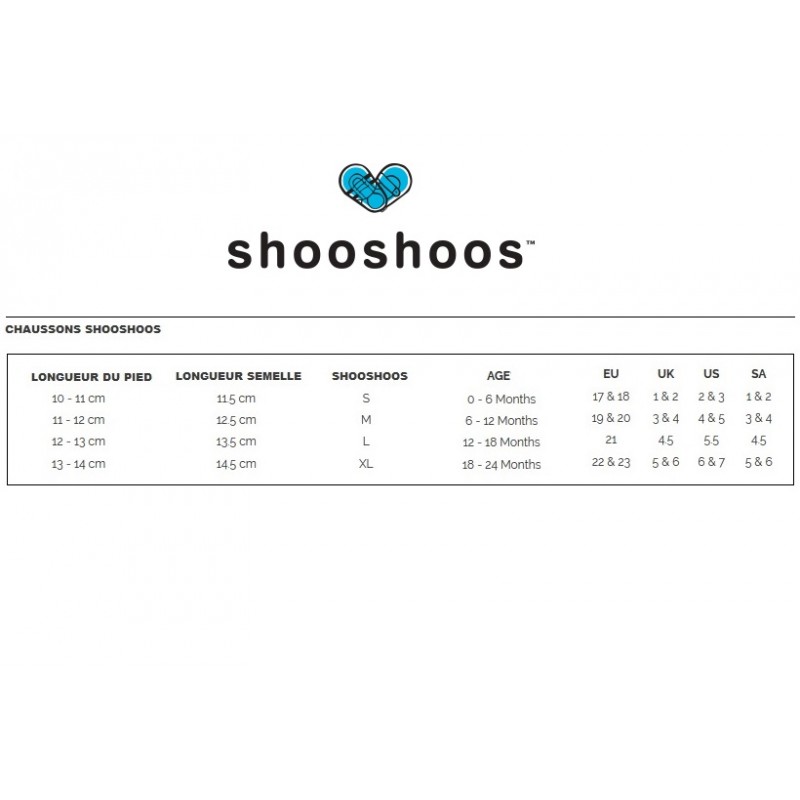 Guide des tailles chaussons Shooshoos