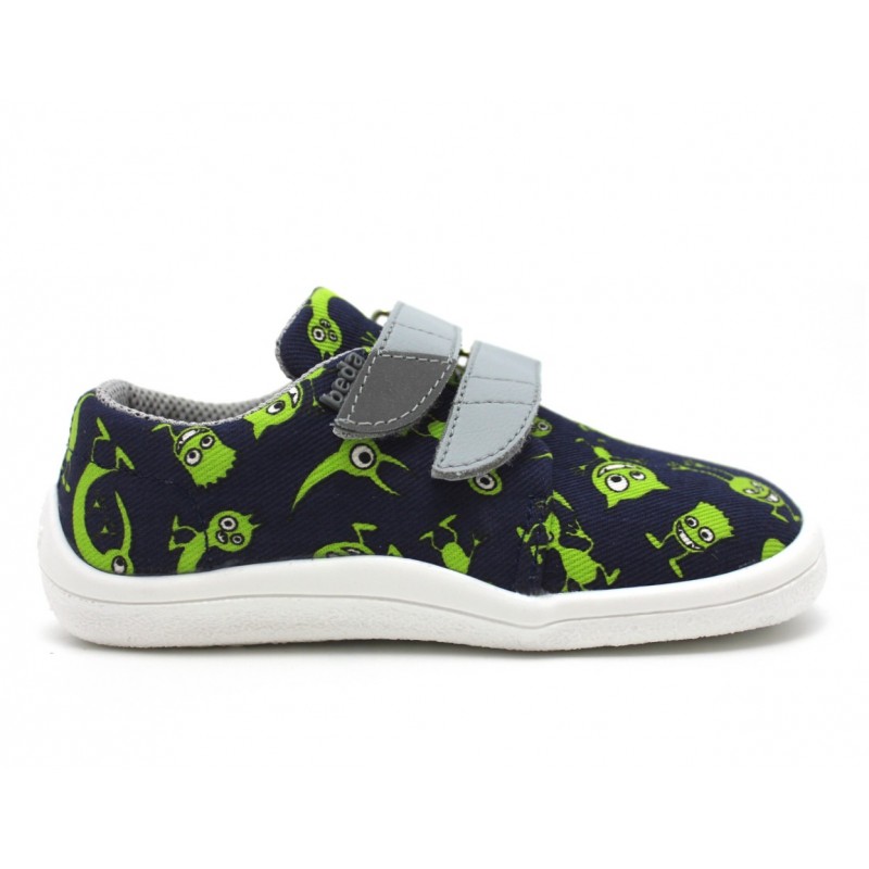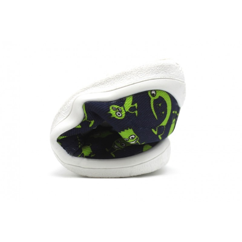 La toile imprimée de monstres, marine et vert pep's s'accorde à merveille avec la semelle blanche.