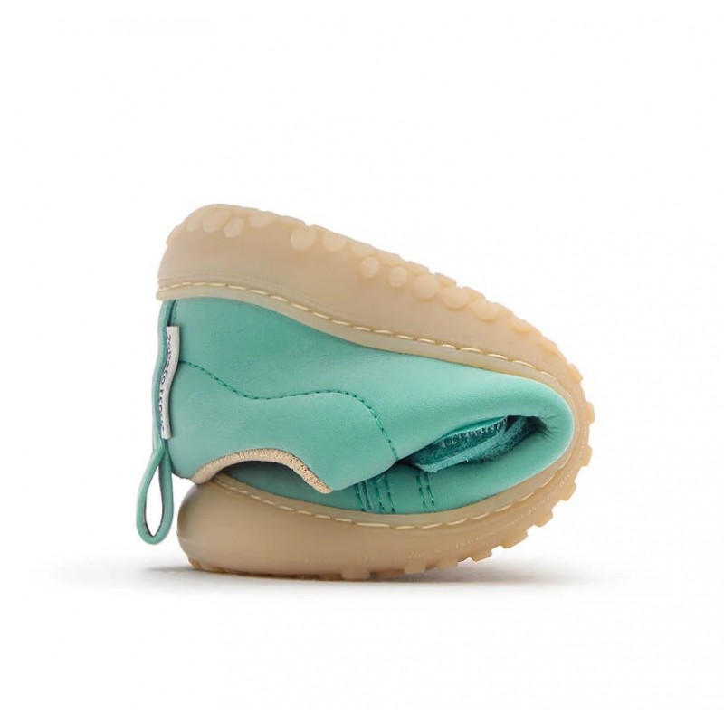Semelle fine, plate et flexible : favorise la connexion sensorielle avec le sol, favorisant le développement naturel du pied.