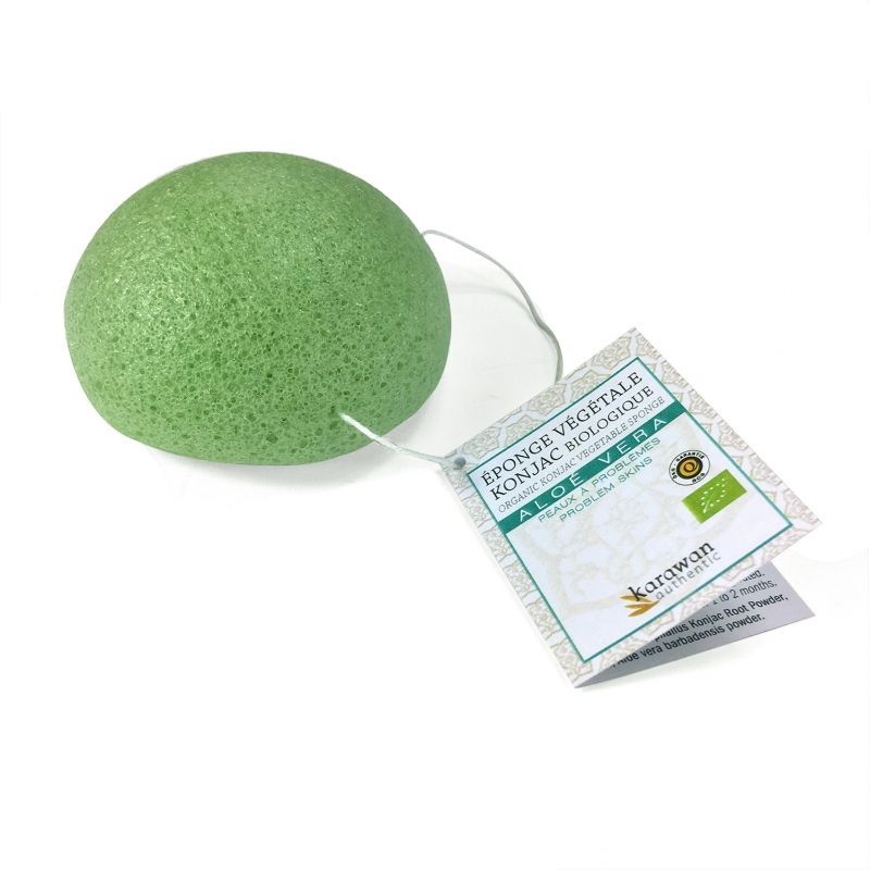- Une éponge végétale de Konjac biologique* naturelle : nettoyant doux, démaquillant visage, biodégradable, zéro déchet.