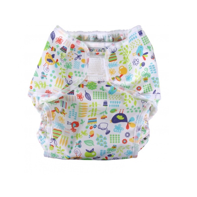 Culotte de protection popowrap à scratchs pour couches lavables bébé. Coloris "jardin".