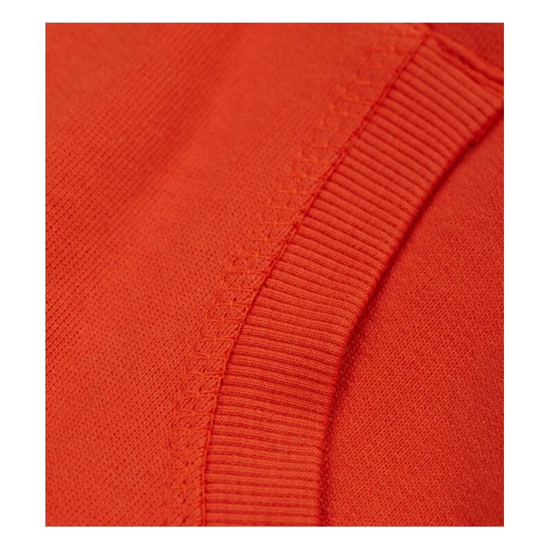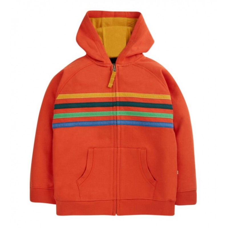 Gilet en coton biologique pour garçon de couleur orange avec capuche.