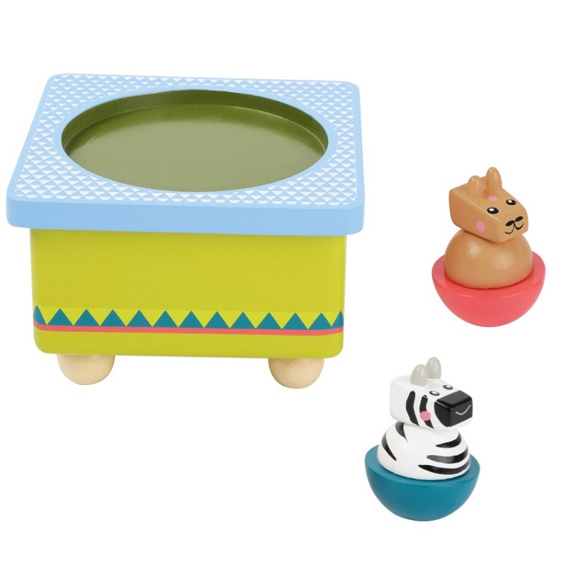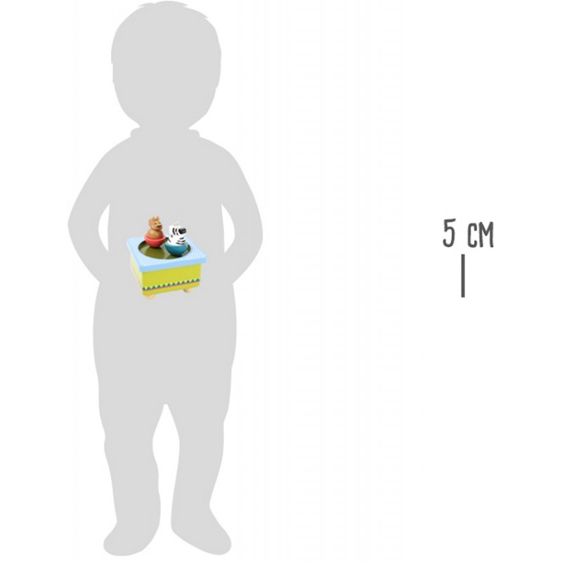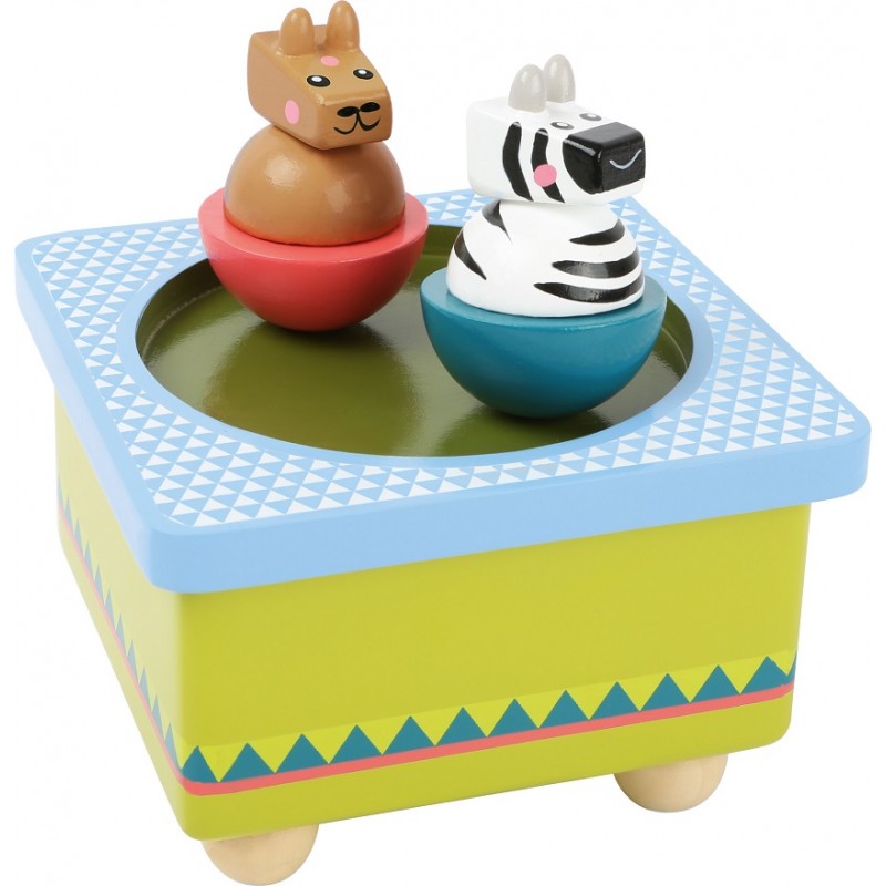 Boite à musique en bois avec ses animaux de la savane qui dansent.