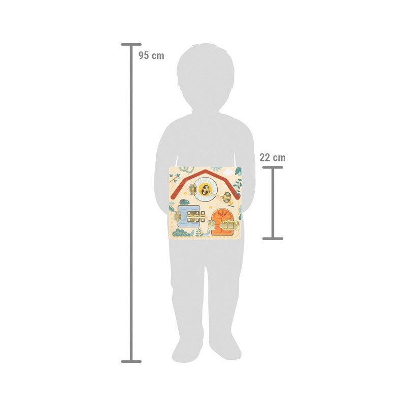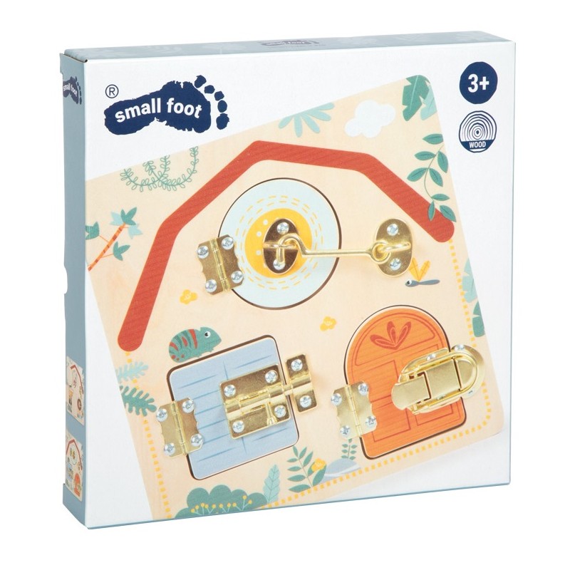 En ouvrant et en fermant le verrou, le crochet de porte et le loquet, les enfants apprennent des compétences pratiques quotidiennes et développent leurs capacités motrices fines.