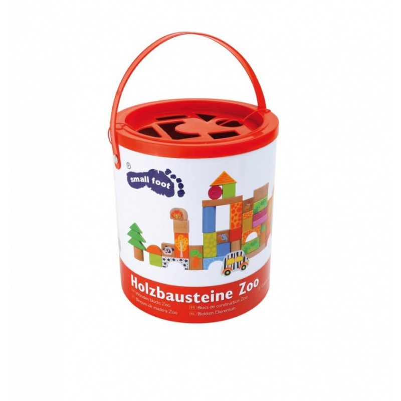 Les blocs de construction en bois massif sont imprimés de mignons animaux du zoo et créent une jolie scène.