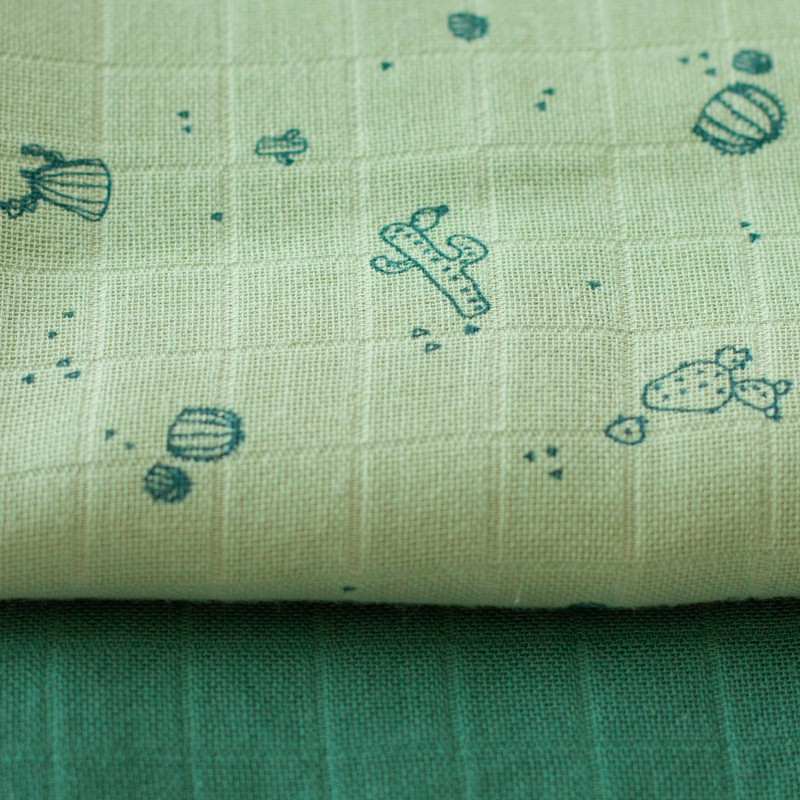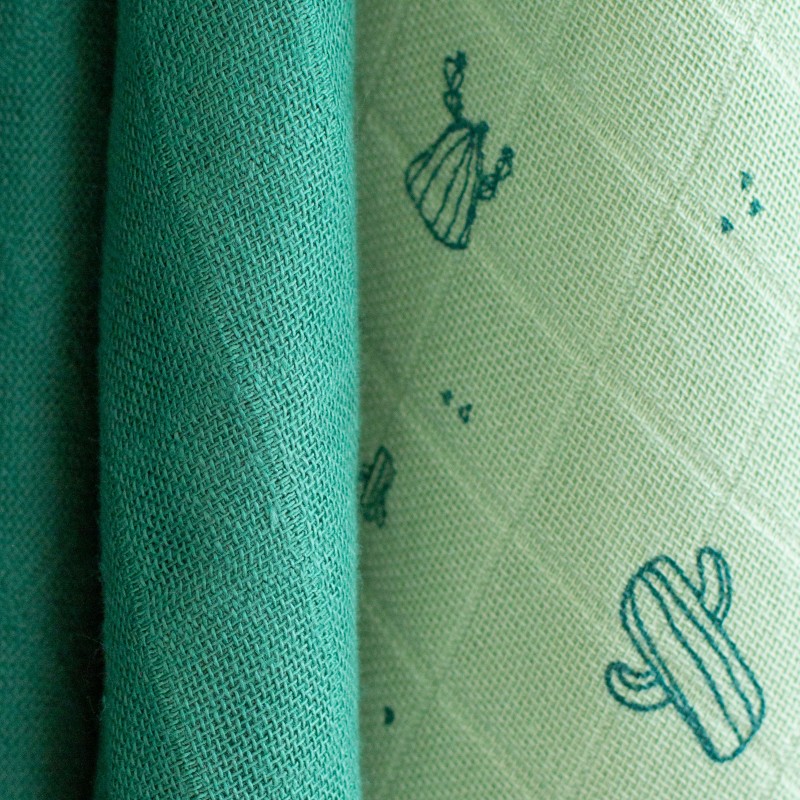 Lot 2 grands langes coton bio Green Cactus