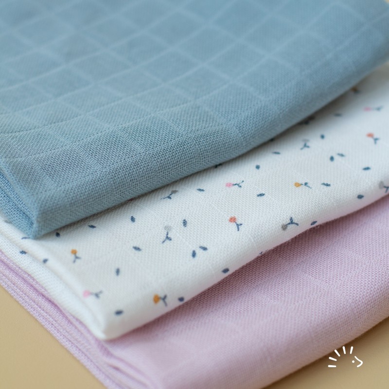 Ensemble de 3 langes aux couleurs douces et naturelles.