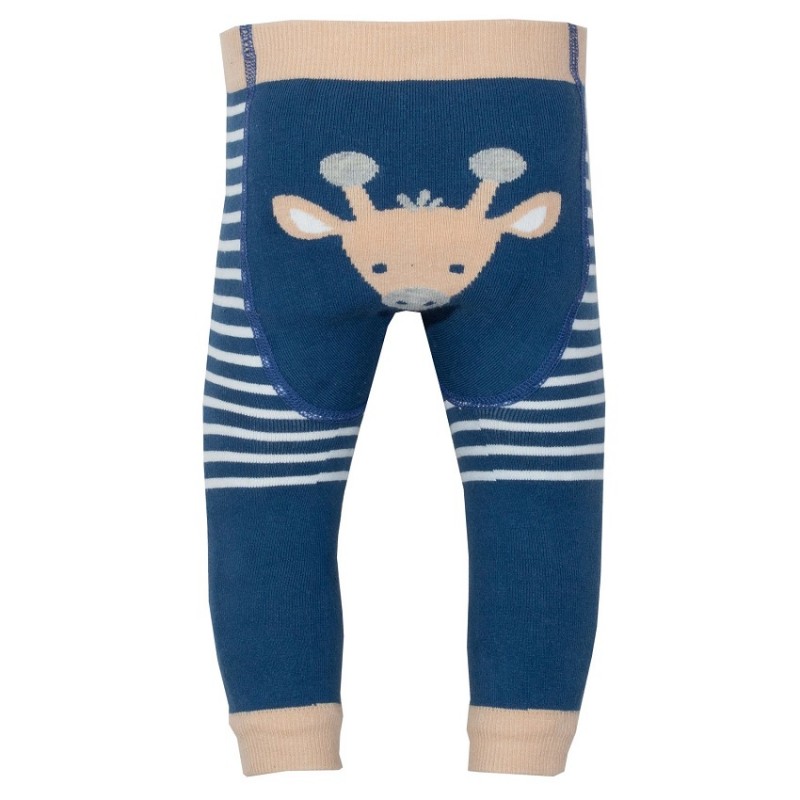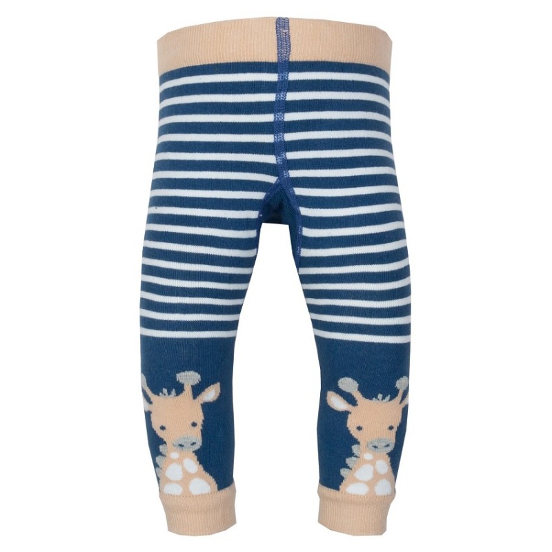 A rayures bleues et blanches ce leggings façon collants est vraiment rigolo avec sa petite girafe qui se cache sur le derrière !