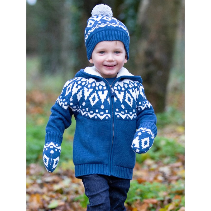 Super douillet ce gilet tricoté en coton biologique est doté d'une doublure en molleton pour bien garder la chaleur à l'intérieur.