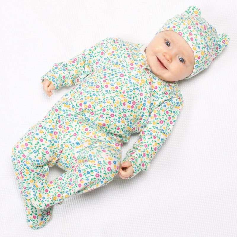 Un joli imprimé fleuri décore cet adorable pyjama bébé.