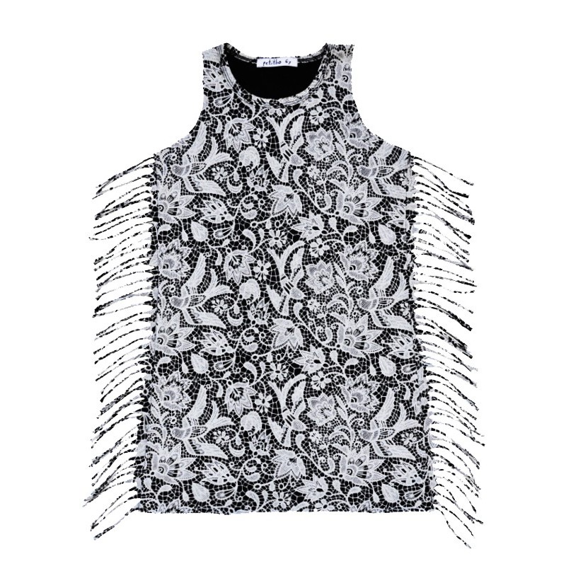 Franges sur le devant et finition bords bruts.
