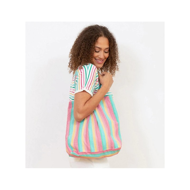 Chez Kite, nous sommes impatients de faire notre part pour la planète, donc avec certains de nos restes de tissus, nous avons conçu un sac réversible et durable en utilisant nos tissus rayés Queen Bee et arc-en-ciel.