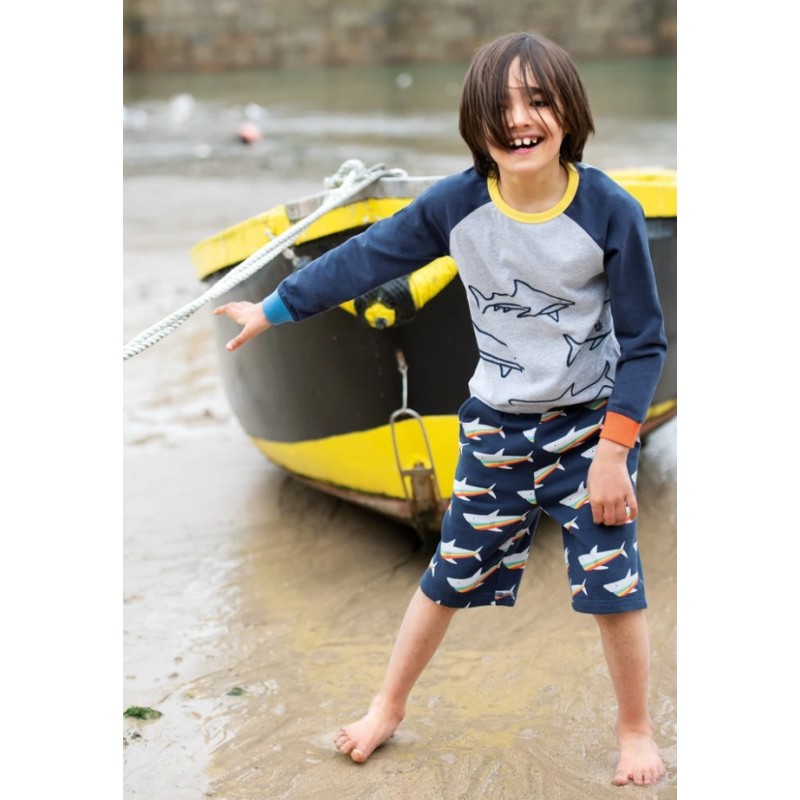 Bleu marine il va beaucoup plaire aux enfant avec son fabuleux imprimé de requin colorés.
