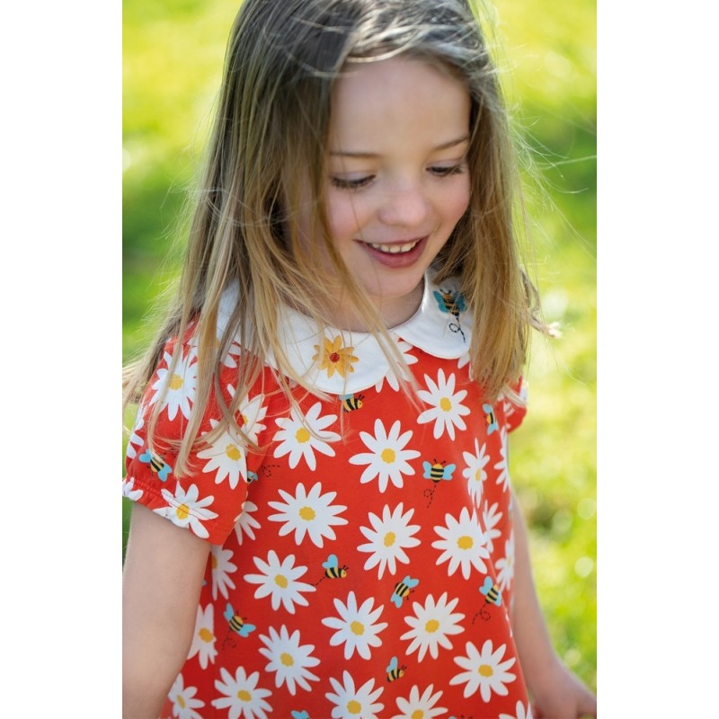 La délicate broderie d'abeilles et l'imprimé "Nice Daisy" sur ce tout NOUVEAU top à col claudine célèbre les abeilles, pour rappeler à quel point ces petits insectes sont essentiels à notre écosystème !