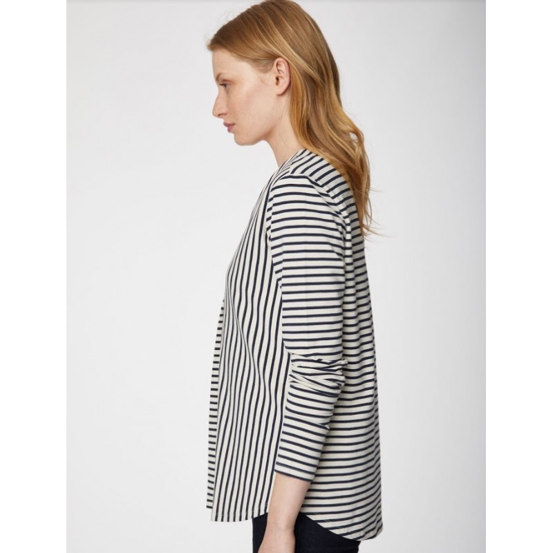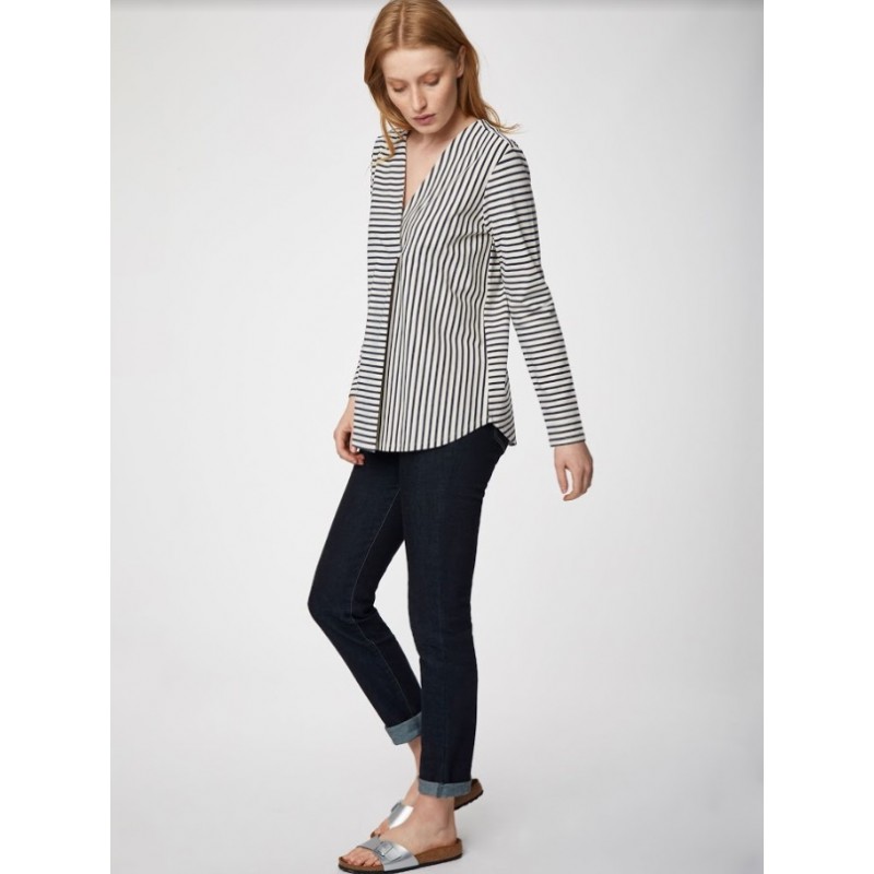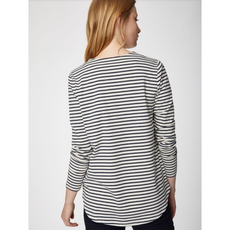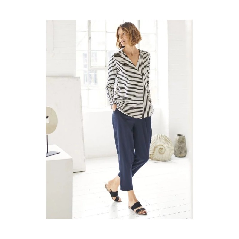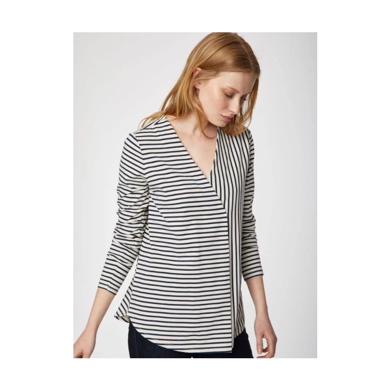 Ce top à l'encolure croisée est très sympas avec ses rayures bleu marine et crème.